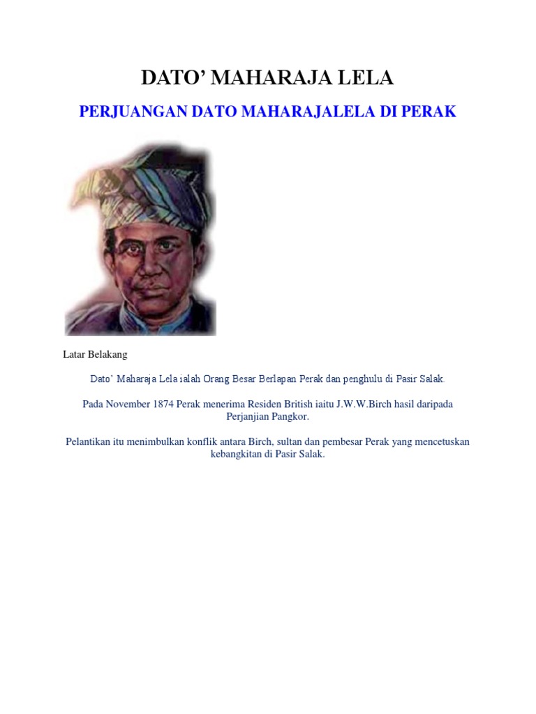 Jihad Dato Maharaja Lela Perjuangan Dato Maharajalela Di Perak Latar Belakang Dato Maharaja Lela Studocu